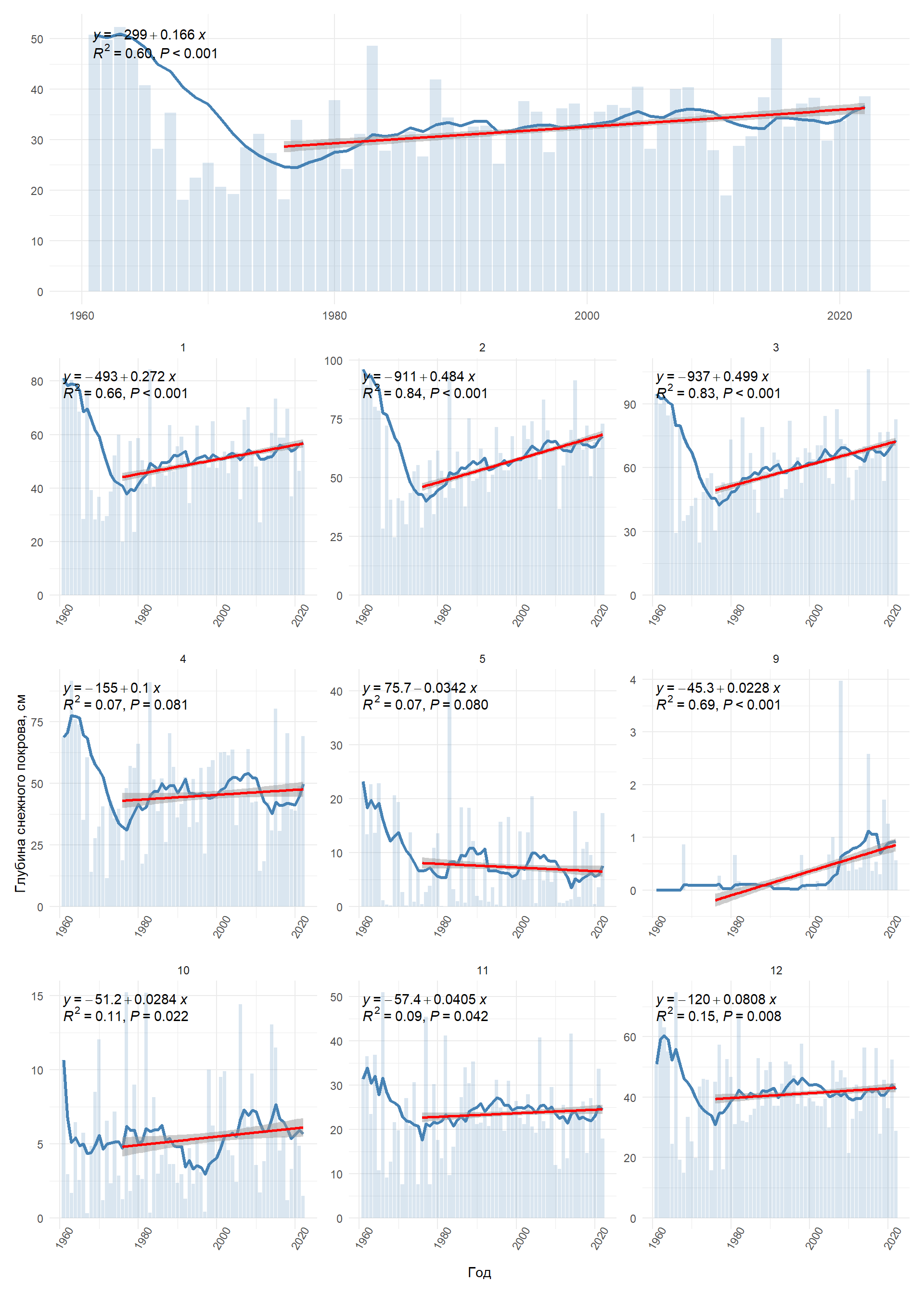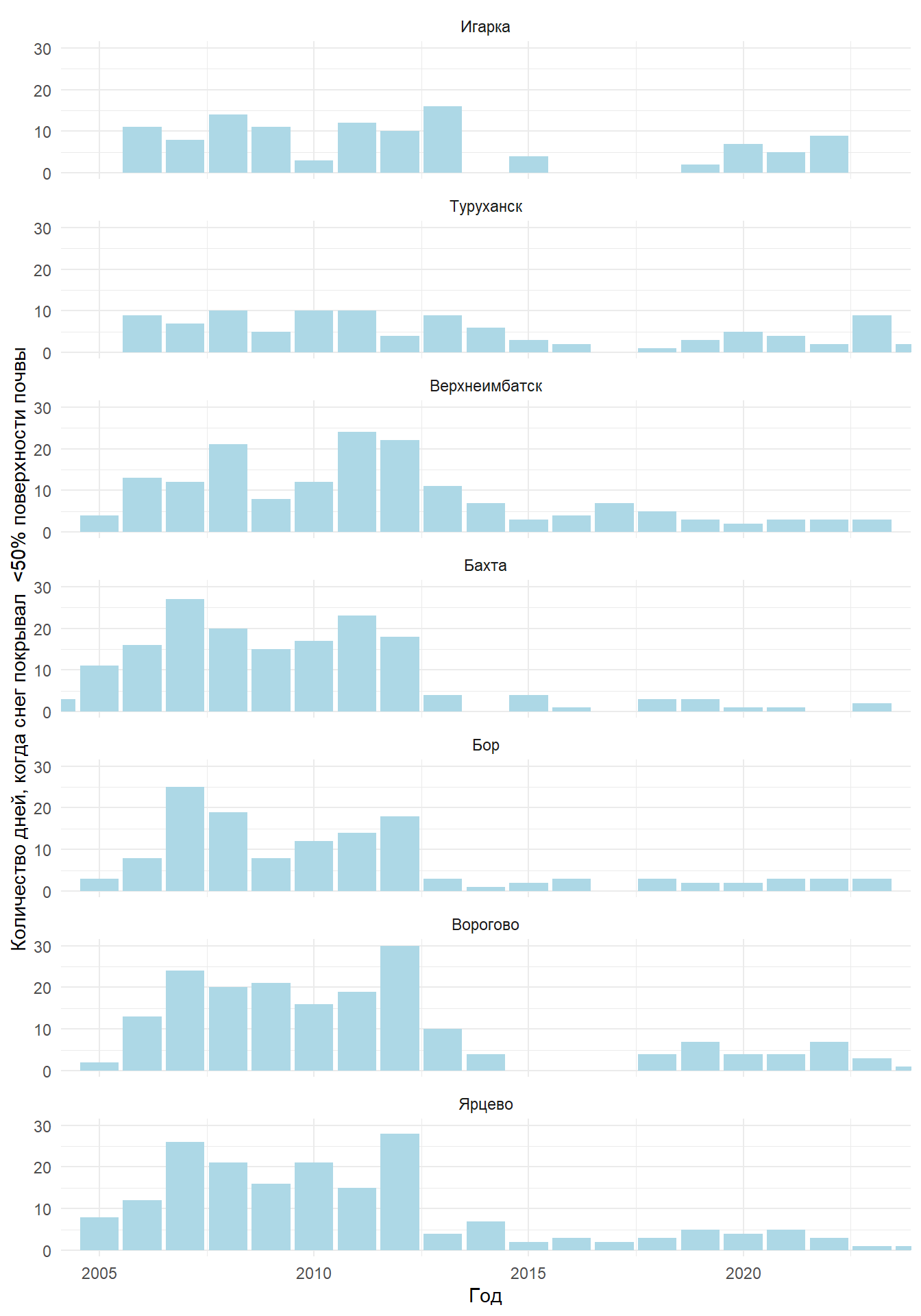 y = "Количество дней, когда снег покрывал <50% поверхности почвы")+